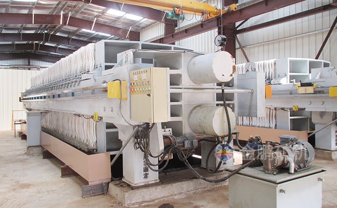 浸出槽尾礦經(jīng)緩沖槽由泵輸送到全自動(dòng)廂式壓濾機(jī),壓濾后的水流入循環(huán)水池以備循環(huán)利用,濾餅經(jīng)帶運(yùn)輸機(jī)運(yùn)到尾礦堆場(chǎng),卡車(chē)將尾礦運(yùn)到尾礦庫(kù)。