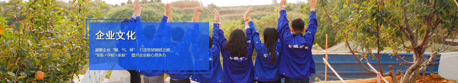 金鵬人身上都有一種韌勁,這來源于領導人于建環女士的個人領導力,更來源于這個企業獨特的魅力。 在夯實礦業一條龍服務的基礎上,金鵬打造了一支“召之即來、來者能戰、 戰者必勝”的鋼鐵之師。金鵬集團十年的快速發展,離不開這個企業的“獨特”企業文化——“軍隊+學校+家庭”。