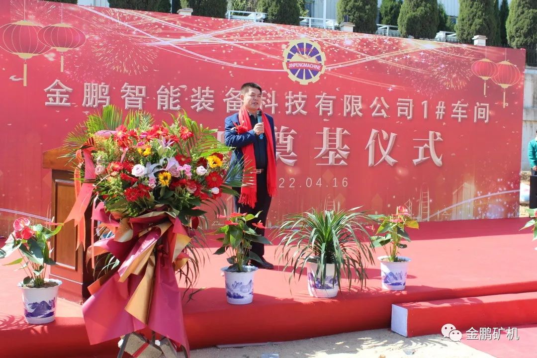 人間四月,不負期待。2022年4月16日上午,煙臺金鵬智能裝備科技有限公司1#廠房開工奠基儀式隆重舉行。煙臺金鵬礦業(yè)機械有限公司董事長于建環(huán),總經(jīng)理許慶硯,山東普萊恩工程設(shè)計有限公司劉忠國,元亨工程咨詢集團有限公司蓋淑君,山東廣源集團有限公司總經(jīng)理管軍,以及各界代表、金鵬員工等數(shù)百人參加開工儀式。